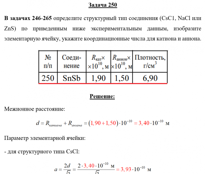 Для студентов по предмету ХимияЗадача 250 - определите структурный тип соединения (СsСl, NaCl или ZnS) по приведенным ниже экспериментальным данным, изобразите элементарную ячейку, Задача 250 - определите структурный тип соединения (СsСl, NaCl или ZnS) по приведенным ниже экспериментальным данным, изобразите элементарную ячейку,