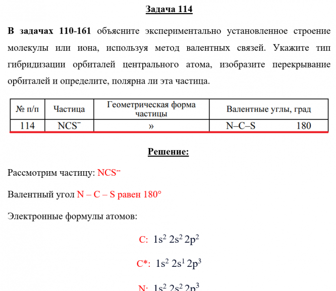 Для студентов по предмету ХимияЗадача 114 - объясните экспериментально установленное строение молекулы или иона, используя метод валентных связей. Укажите тип гибридизации орбиталейЗадача 114 - объясните экспериментально установленное строение молекулы или иона, используя метод валентных связей. Укажите тип гибридизации орбиталей