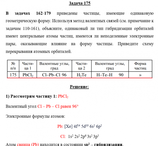 В задачах 162-179 приведены частицы, имеющие одинаковую геометрическую форму. Используя метод валентных связей (см. примечание к задачам 110-161), объясните, одинаковый ли тип гибридизации орбиталей имеют центральные атомы частиц, имеются ли неподеленные электронные пары, оказывающие влияние на форму частицы. Приведите схему перекрывания атомных орбиталей..