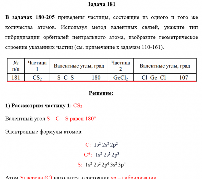 Задача 181 - приведены частицы, состоящие из одного и того же количества атомов. Используя метод валентных связей, укажите тип гибридизации орбиталей центрального атома, изобразите геометрическое строение указанных частиц (см. примечание к задачам 11