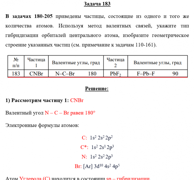 Задача 183 - приведены частицы, состоящие из одного и того же количества атомов. Используя метод валентных связей, укажите тип гибридизации орбиталей центрального атома, изобразите геометрическое строение указанных частиц (см. примечание к задачам 11