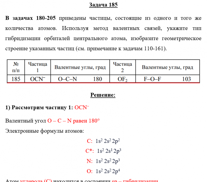 Для студентов по предмету ХимияЗадача 185 - приведены частицы, состоящие из одного и того же количества атомов. Используя метод валентных связей, укажите тип гибридизации орбиталей Задача 185 - приведены частицы, состоящие из одного и того же количества атомов. Используя метод валентных связей, укажите тип гибридизации орбиталей