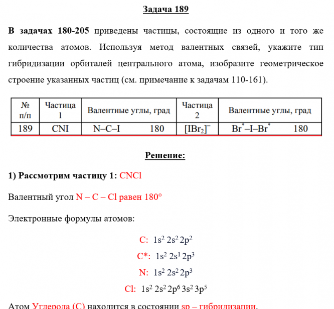 Задача 189 - приведены частицы, состоящие из одного и того же количества атомов. Используя метод валентных связей, укажите тип гибридизации орбиталей центрального атома, изобразите геометрическое строение указанных частиц (см. примечание к задачам 11
