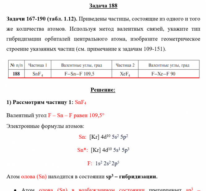 Главная » Учебные материалы » Химия » Решения задач » Несколько классов/семестров » Номер 188 » Задача 188 - Приведены частицы, состоящие из одного и того же количества атомов. Используя метод валентных связей, укажите тип гибридизации орбиталей центрального атома, изобразите геометрическое строение указанных частиц (см. примечание к задачам 10