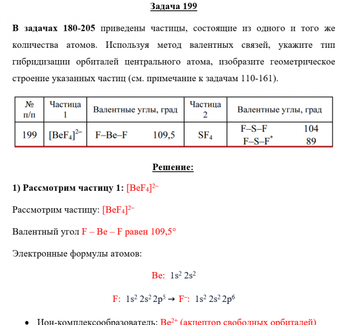 Задача 199 - приведены частицы, состоящие из одного и того же количества атомов. Используя метод валентных связей, укажите тип гибридизации орбиталей центрального атома, изобразите геометрическое строение указанных частиц (см. примечание к задачам 11