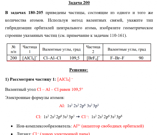 Задача 200 - приведены частицы, состоящие из одного и того же количества атомов. Используя метод валентных связей, укажите тип гибридизации орбиталей центрального атома, изобразите геометрическое строение указанных частиц (см. примечание к задачам 11