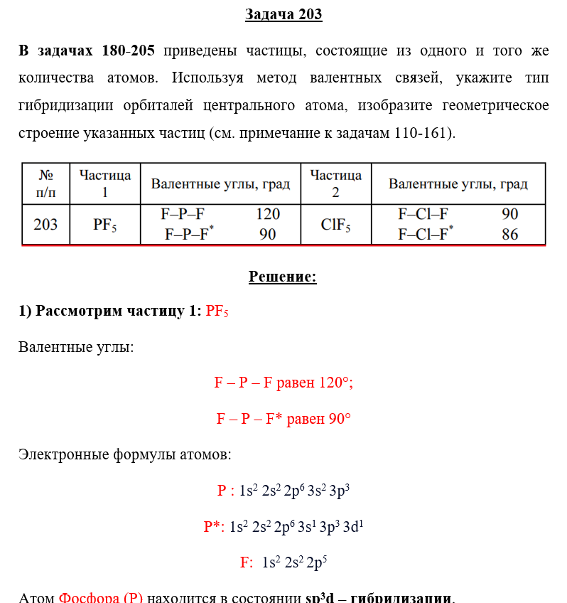 Задача 203 - приведены частицы, состоящие из одного и того же количества атомов. Используя метод валентных связей, укажите тип гибридизации орбиталей центрального атома, изобразите геометрическое строение указанных частиц (см. примечание к задачам 11