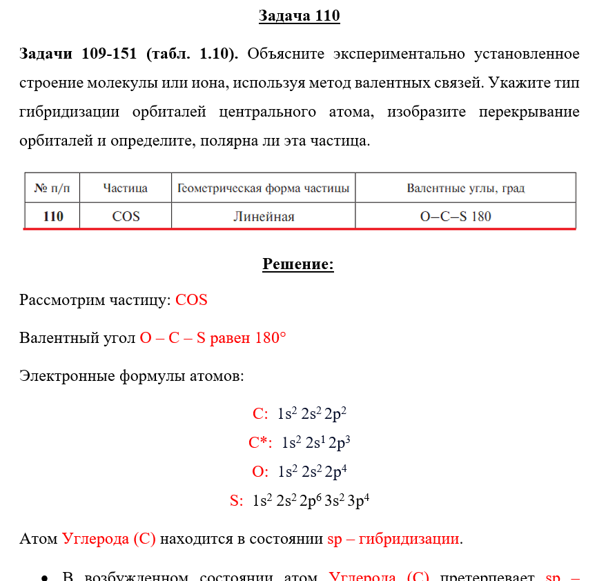 Для студентов по предмету ХимияЗадача 110 - Объясните экспериментально установленное строение молекулы или иона, используя метод валентных связей. Укажите тип гибридизации орбиталейЗадача 110 - Объясните экспериментально установленное строение молекулы или иона, используя метод валентных связей. Укажите тип гибридизации орбиталей