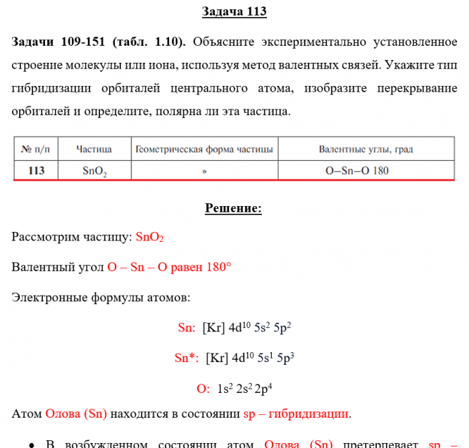 Для студентов по предмету ХимияЗадача 113 - Объясните экспериментально установленное строение молекулы или иона, используя метод валентных связей. Укажите тип гибридизации орбиталейЗадача 113 - Объясните экспериментально установленное строение молекулы или иона, используя метод валентных связей. Укажите тип гибридизации орбиталей