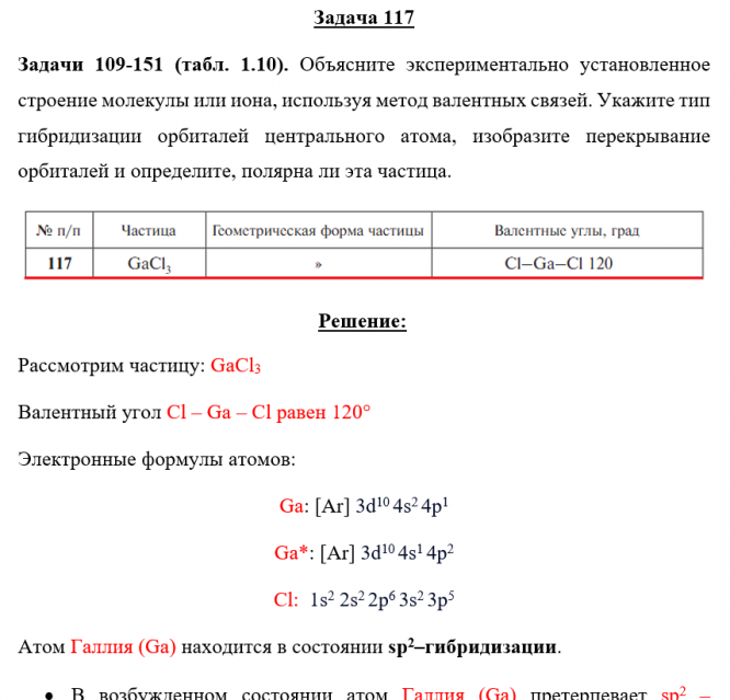 Для студентов по предмету ХимияЗадача 117 - Объясните экспериментально установленное строение молекулы или иона, используя метод валентных связей. Укажите тип гибридизации орбиталейЗадача 117 - Объясните экспериментально установленное строение молекулы или иона, используя метод валентных связей. Укажите тип гибридизации орбиталей