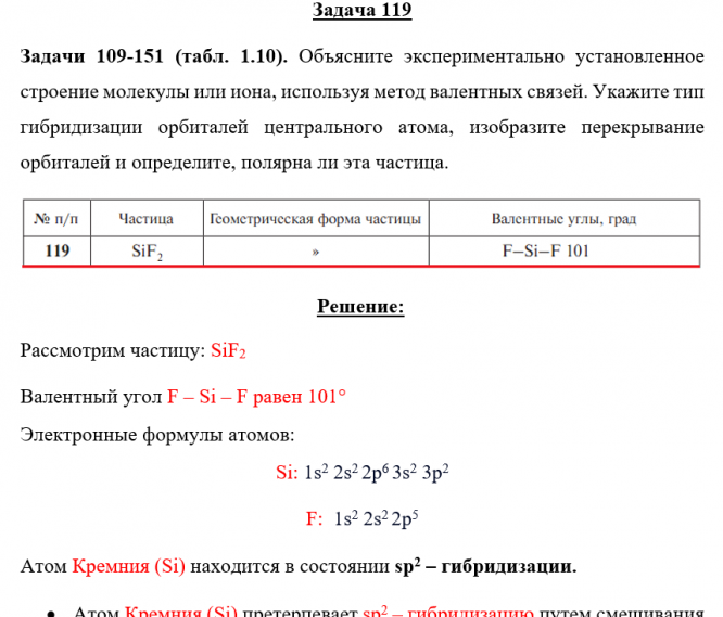 Для студентов по предмету ХимияЗадача 119 - Объясните экспериментально установленное строение молекулы или иона, используя метод валентных связей. Укажите тип гибридизации орбиталейЗадача 119 - Объясните экспериментально установленное строение молекулы или иона, используя метод валентных связей. Укажите тип гибридизации орбиталей