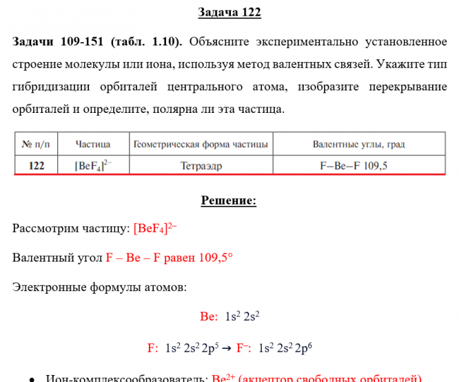 Для студентов по предмету ХимияЗадача 122 - Объясните экспериментально установленное строение молекулы или иона, используя метод валентных связей. Укажите тип гибридизации орбиталейЗадача 122 - Объясните экспериментально установленное строение молекулы или иона, используя метод валентных связей. Укажите тип гибридизации орбиталей