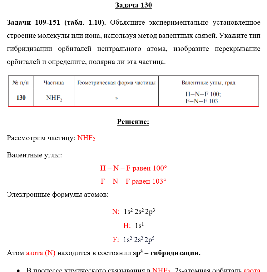 Для студентов по предмету ХимияЗадача 130 - Объясните экспериментально установленное строение молекулы или иона, используя метод валентных связей. Укажите тип гибридизации орбиталейЗадача 130 - Объясните экспериментально установленное строение молекулы или иона, используя метод валентных связей. Укажите тип гибридизации орбиталей