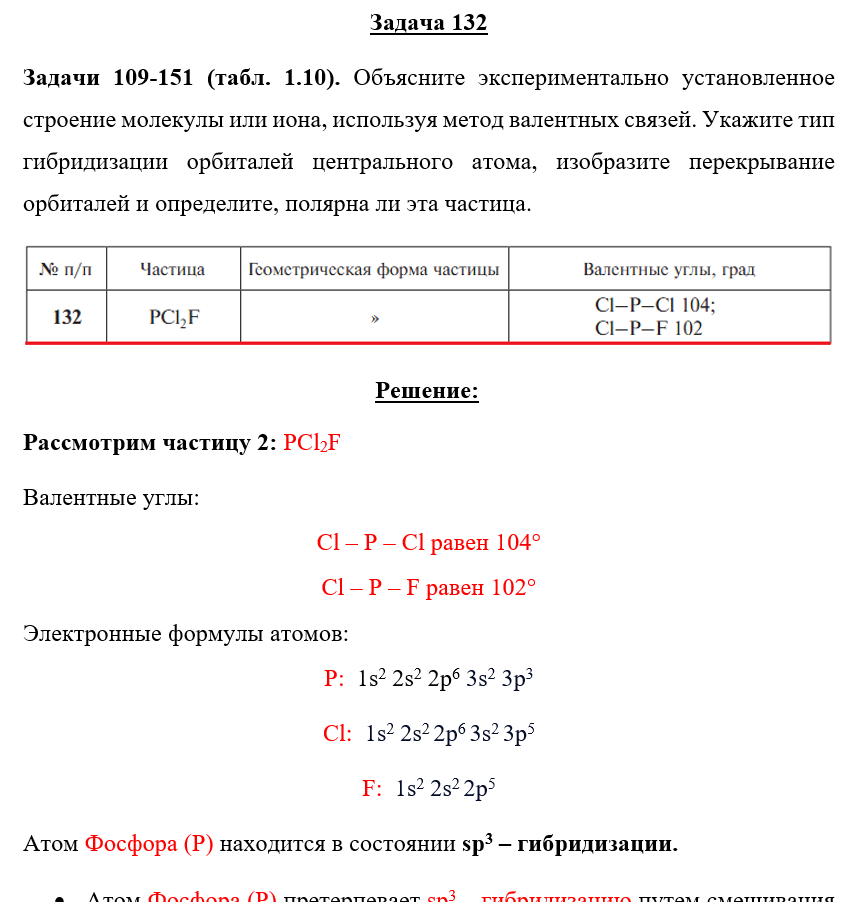 Для студентов по предмету ХимияЗадача 132 - Объясните экспериментально установленное строение молекулы или иона, используя метод валентных связей. Укажите тип гибридизации орбиталейЗадача 132 - Объясните экспериментально установленное строение молекулы или иона, используя метод валентных связей. Укажите тип гибридизации орбиталей