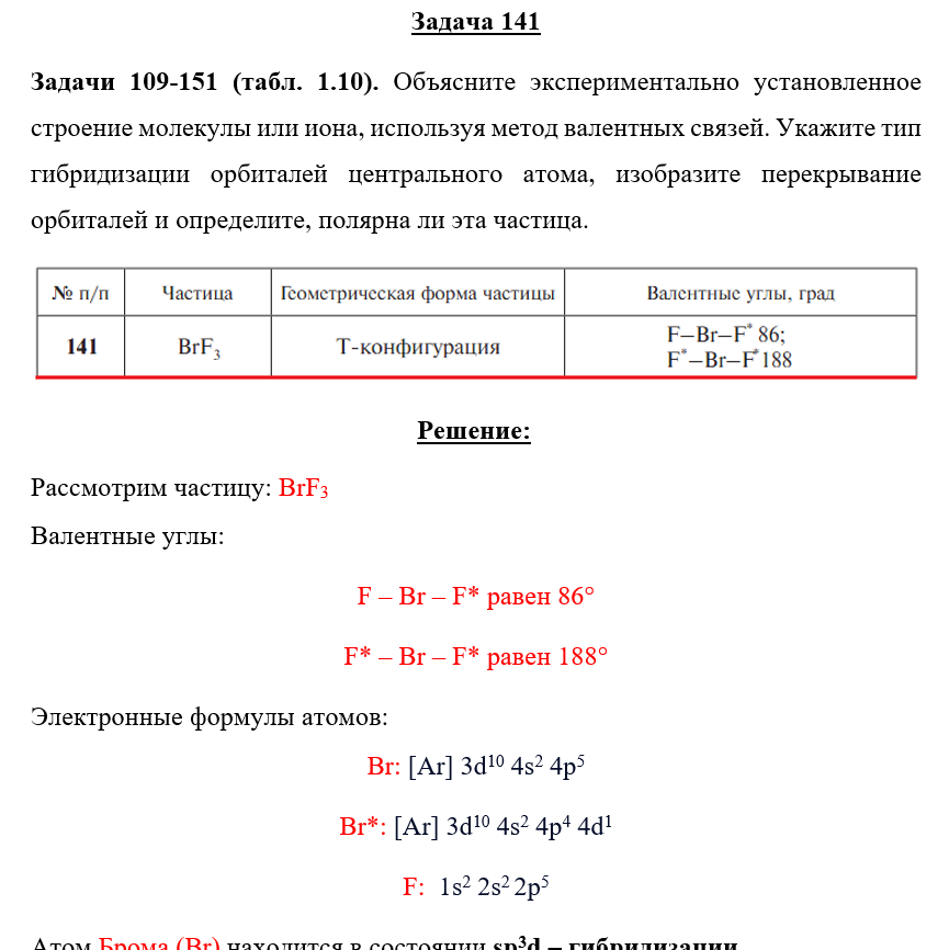 Для студентов по предмету ХимияЗадача 141 - Объясните экспериментально установленное строение молекулы или иона, используя метод валентных связей. Укажите тип гибридизации орбиталейЗадача 141 - Объясните экспериментально установленное строение молекулы или иона, используя метод валентных связей. Укажите тип гибридизации орбиталей