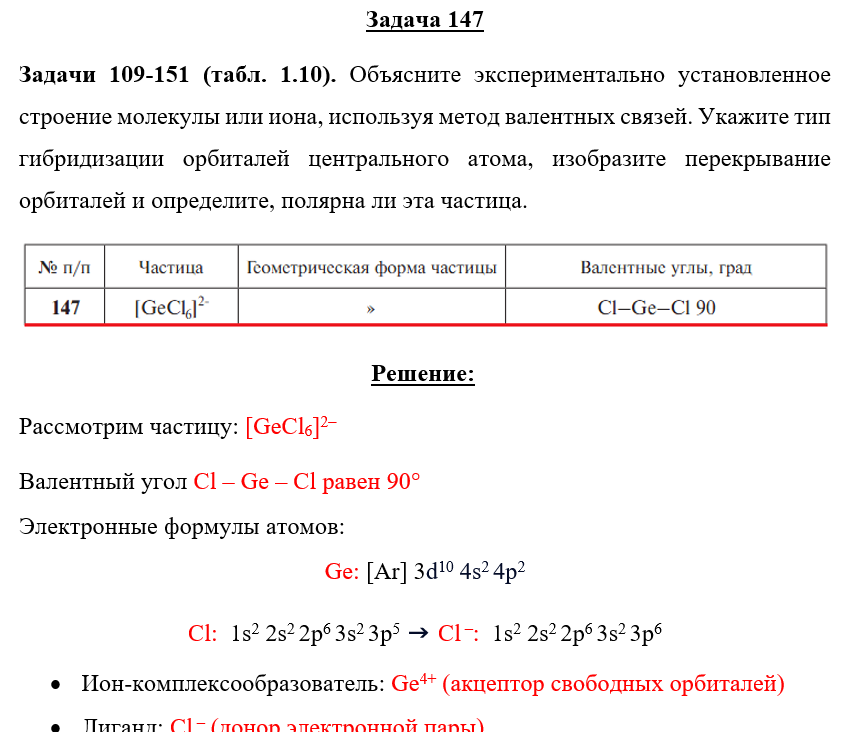 Для студентов по предмету ХимияЗадача 147 - Объясните экспериментально установленное строение молекулы или иона, используя метод валентных связей. Укажите тип гибридизации орбиталейЗадача 147 - Объясните экспериментально установленное строение молекулы или иона, используя метод валентных связей. Укажите тип гибридизации орбиталей