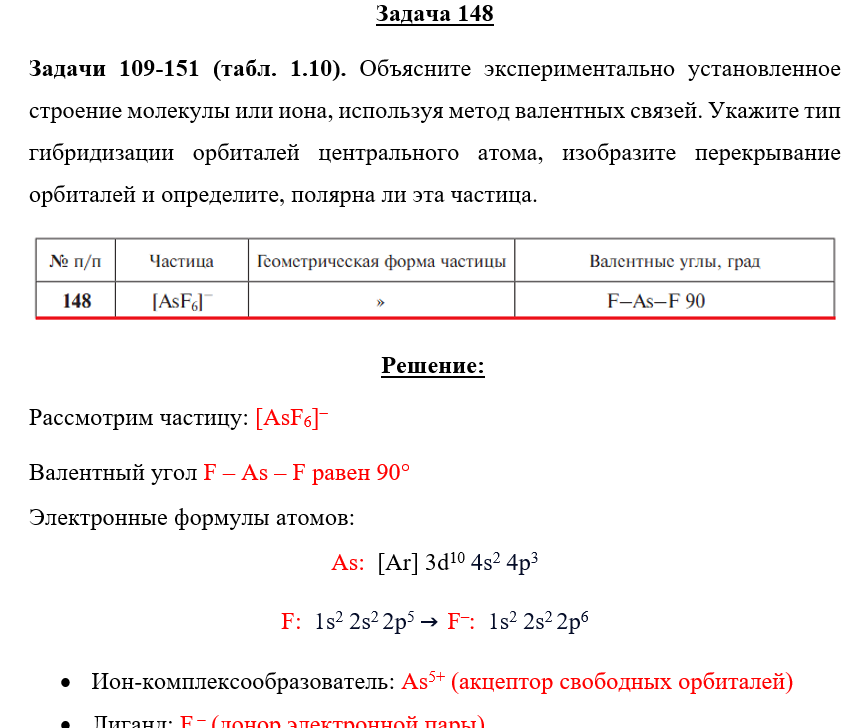 Для студентов по предмету ХимияЗадача 148 - Объясните экспериментально установленное строение молекулы или иона, используя метод валентных связей. Укажите тип гибридизации орбиталейЗадача 148 - Объясните экспериментально установленное строение молекулы или иона, используя метод валентных связей. Укажите тип гибридизации орбиталей