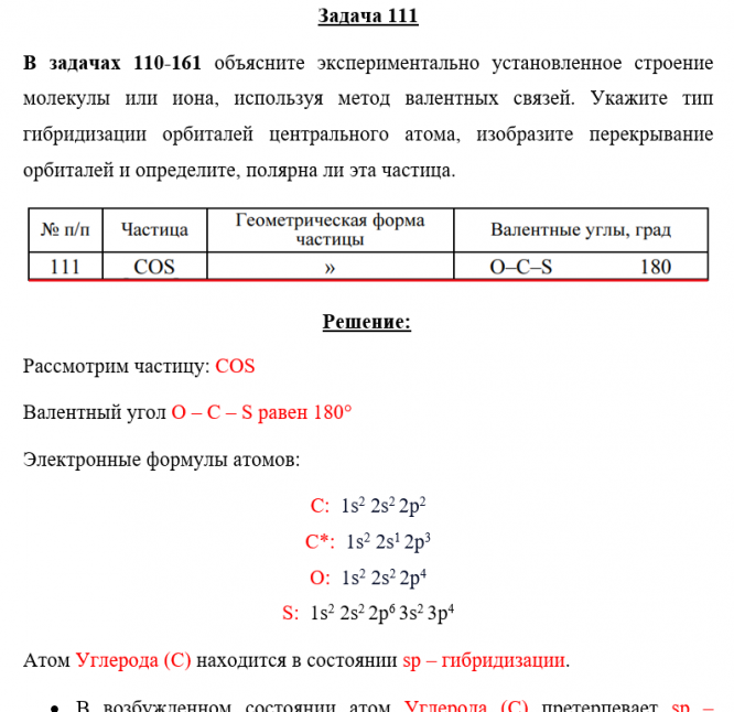Задача 111 - объясните экспериментально установленное строение молекулы или иона, используя метод валентных связей. Укажите тип гибридизации орбиталей центрального атома, изобразите перекрывание орбиталей и определите, полярна ли эта частица.