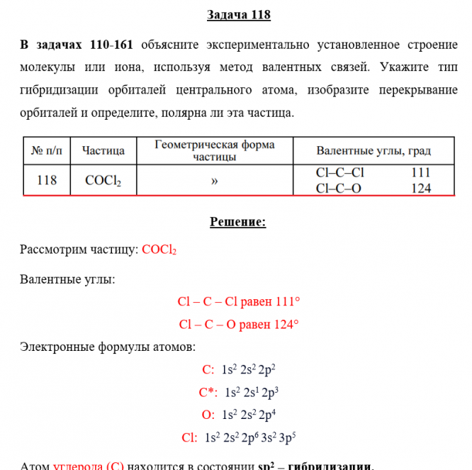 Задача 118 - объясните экспериментально установленное строение молекулы или иона, используя метод валентных связей. Укажите тип гибридизации орбиталей центрального атома, изобразите перекрывание орбиталей и определите, полярна ли эта частица.