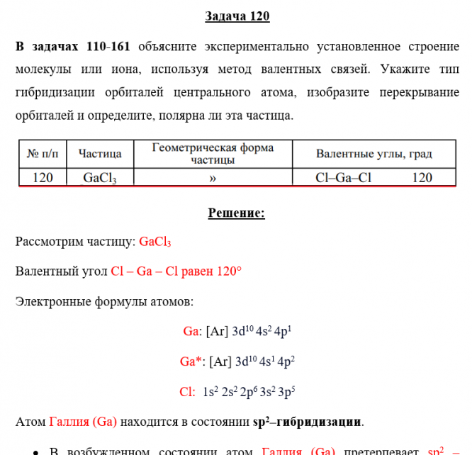 Задача 120 - объясните экспериментально установленное строение молекулы или иона, используя метод валентных связей. Укажите тип гибридизации орбиталей центрального атома, изобразите перекрывание орбиталей и определите, полярна ли эта частица.