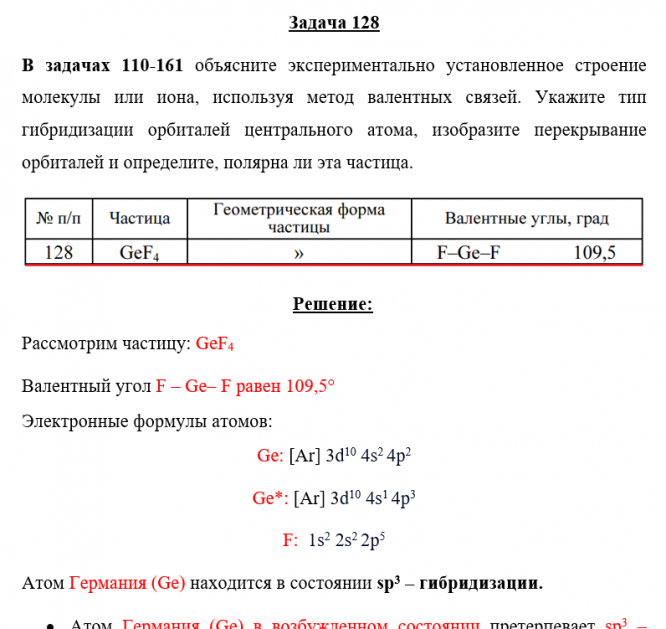 Для студентов по предмету ХимияЗадача 128 - объясните экспериментально установленное строение молекулы или иона, используя метод валентных связей. Укажите тип гибридизации орбиталейЗадача 128 - объясните экспериментально установленное строение молекулы или иона, используя метод валентных связей. Укажите тип гибридизации орбиталей