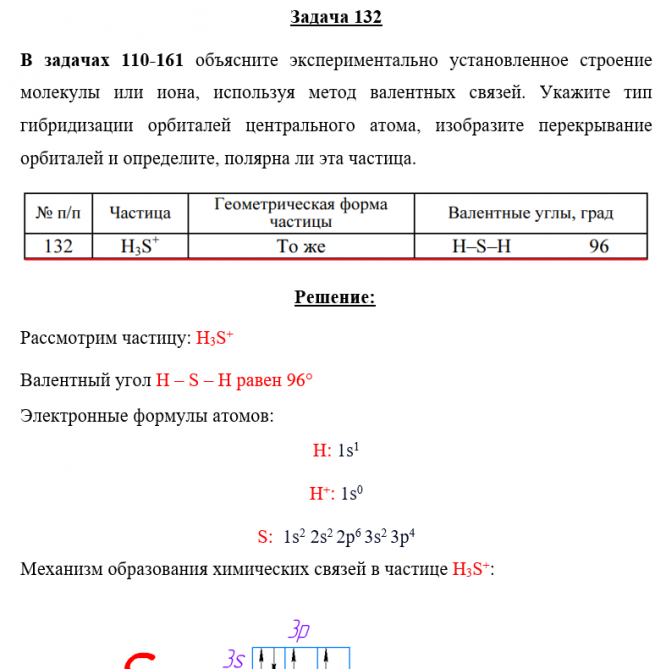 Задача 132 - объясните экспериментально установленное строение молекулы или иона, используя метод валентных связей. Укажите тип гибридизации орбиталей центрального атома, изобразите перекрывание орбиталей и определите, полярна ли эта частица.