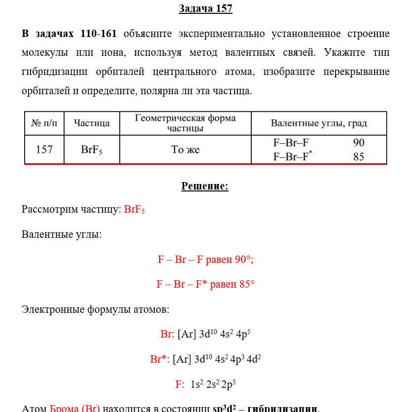 Для студентов по предмету ХимияЗадача 157 - объясните экспериментально установленное строение молекулы или иона, используя метод валентных связей. Укажите тип гибридизации орбиталейЗадача 157 - объясните экспериментально установленное строение молекулы или иона, используя метод валентных связей. Укажите тип гибридизации орбиталей