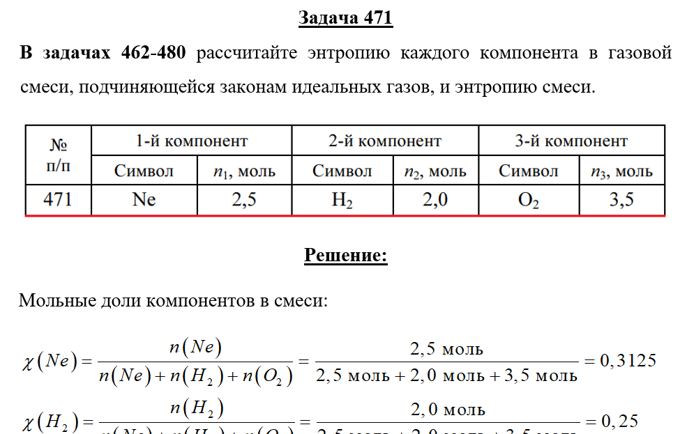 Для студентов по предмету ХимияЗадача 471 - рассчитайте энтропию каждого компонента в газовой смеси, подчиняющейся законам идеальных газов, и энтропию смеси.Задача 471 - рассчитайте энтропию каждого компонента в газовой смеси, подчиняющейся законам идеальных газов, и энтропию смеси.