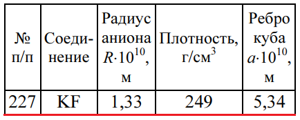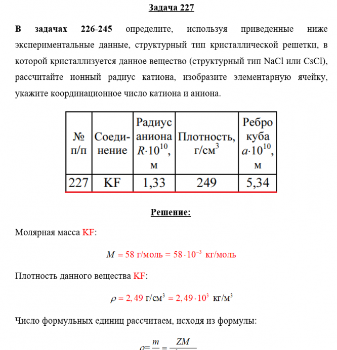 Задача 227 - определите, используя приведенные ниже экспериментальные данные, структурный тип кристаллической решетки, в которой кристаллизуется данное вещество (структурный тип NaCl или CsCl), рассчитайте ионный радиус катиона, изобразите элементарн