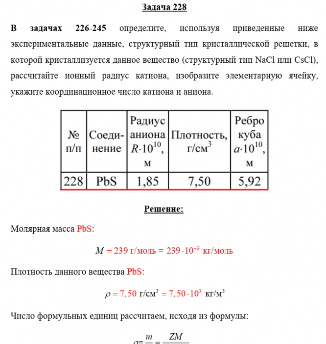 Задача 228 - определите, используя приведенные ниже экспериментальные данные, структурный тип кристаллической решетки, в которой кристаллизуется данное вещество (структурный тип NaCl или CsCl), рассчитайте ионный радиус катиона, изобразите элементарн