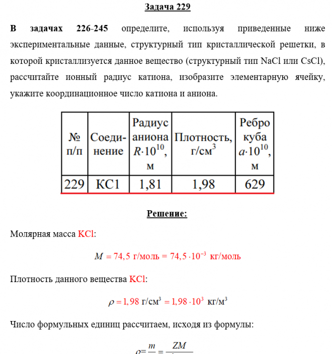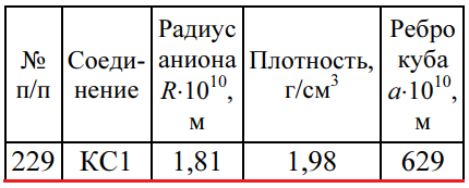 Задача 229 - определите, используя приведенные ниже экспериментальные данные, структурный тип кристаллической решетки, в которой кристаллизуется данное вещество (структурный тип NaCl или CsCl), рассчитайте ионный радиус катиона, изобразите элементарн