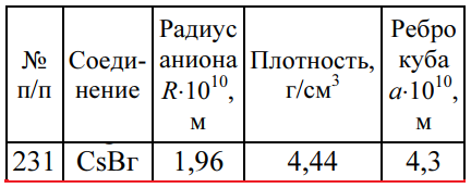 Задача 231 - определите, используя приведенные ниже экспериментальные данные, структурный тип кристаллической решетки, в которой кристаллизуется данное вещество (структурный тип NaCl или CsCl), рассчитайте ионный радиус катиона, изобразите элементарн