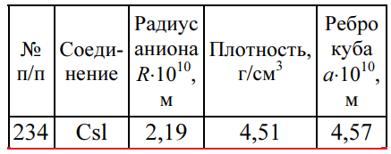 Задача 234 - определите, используя приведенные ниже экспериментальные данные, структурный тип кристаллической решетки, в которой кристаллизуется данное вещество (структурный тип NaCl или CsCl), рассчитайте ионный радиус катиона, изобразите элементарн