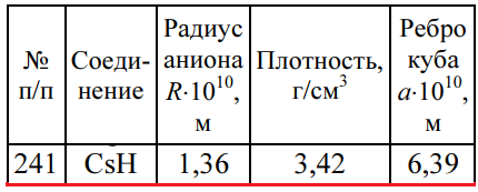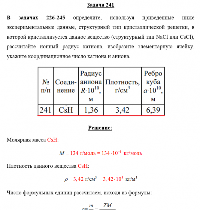 Задача 241 - определите, используя приведенные ниже экспериментальные данные, структурный тип кристаллической решетки, в которой кристаллизуется данное вещество (структурный тип NaCl или CsCl), рассчитайте ионный радиус катиона, изобразите элементарн