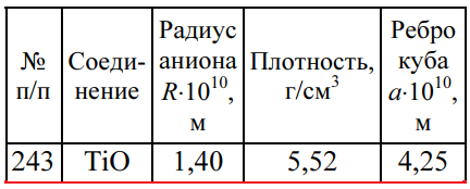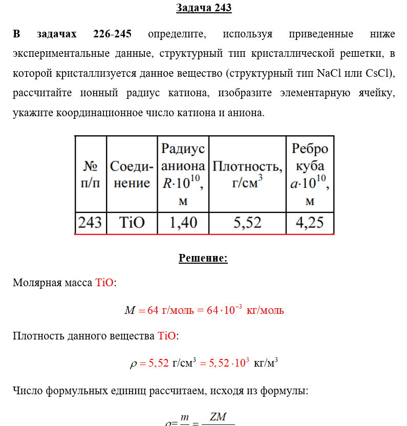 Задача 243 - определите, используя приведенные ниже экспериментальные данные, структурный тип кристаллической решетки, в которой кристаллизуется данное вещество (структурный тип NaCl или CsCl), рассчитайте ионный радиус катиона, изобразите элементарн