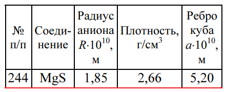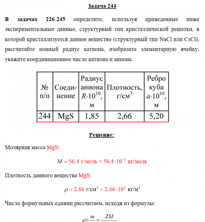 Главная » Учебные материалы » Химия » Решения задач » Несколько классов/семестров » Номер 244 » Задача 244 - определите, используя приведенные ниже экспериментальные данные, структурный тип кристаллической решетки, в которой кристаллизуется данное вещество (структурный тип NaCl или CsCl), рассчитайте ионный радиус катиона, изобразите элементарн