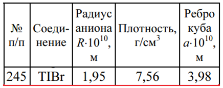 Задача 245 - определите, используя приведенные ниже экспериментальные данные, структурный тип кристаллической решетки, в которой кристаллизуется данное вещество (структурный тип NaCl или CsCl), рассчитайте ионный радиус катиона, изобразите элементарн