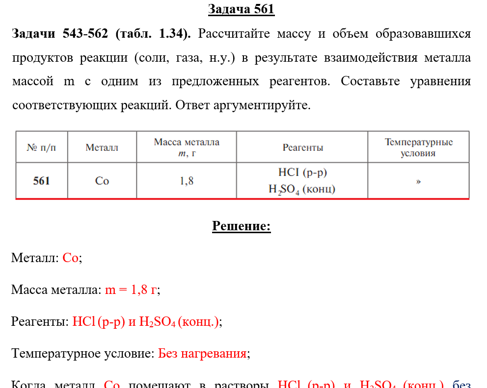 Для студентов по предмету ХимияЗадача 561 - Рассчитайте массу и объем образовавшихся продуктов реакции (соли, газа, н.у.) в результате взаимодействия металла массой m с одним из преЗадача 561 - Рассчитайте массу и объем образовавшихся продуктов реакции (соли, газа, н.у.) в результате взаимодействия металла массой m с одним из пре