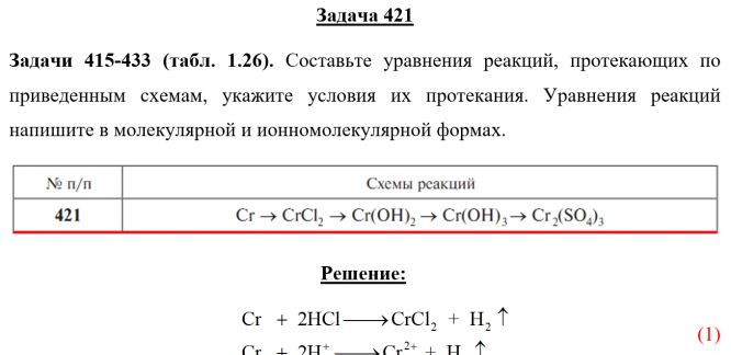 Задача 421 - Составьте уравнения реакций, протекающих по приведенным схемам, укажите условия их протекания. Уравнения реакций напишите в молекулярной и ионномолекулярной формах.