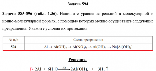 Главная » Учебные материалы » Химия » Решения задач » Несколько классов/семестров » Номер 594 » Задача 594 - Напишите уравнения реакций в молекулярной и ионно-молекулярной формах, с помощью которых можно осуществить следующие превращения. Укажите условия их протекания.