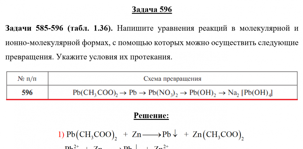 Для студентов по предмету ХимияЗадача 596 - Напишите уравнения реакций в молекулярной и ионно-молекулярной формах, с помощью которых можно осуществить следующие превращения. УкажитеЗадача 596 - Напишите уравнения реакций в молекулярной и ионно-молекулярной формах, с помощью которых можно осуществить следующие превращения. Укажите