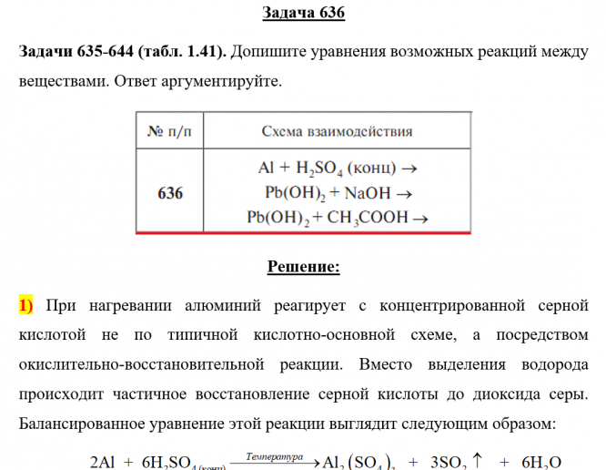 Задачи 635-644 (табл. 1.41). Допишите уравнения возможных реакций между веществами. Ответ аргументируйте..