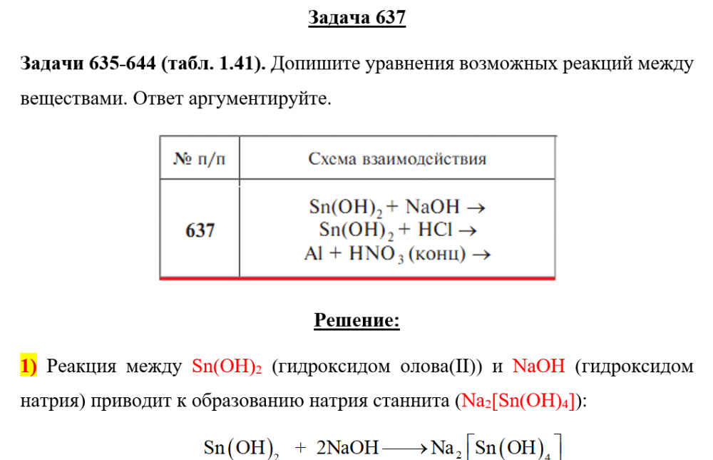 Задачи 635-644 (табл. 1.41). Допишите уравнения возможных реакций между веществами. Ответ аргументируйте..
