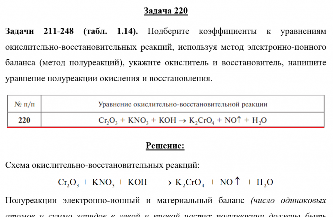 Для студентов по предмету ХимияЗадача 220 - Подберите коэффициенты к уравнениям окислительно-восстановительных реакций, используя метод электронно-ионного баланса (метод полуреакцийЗадача 220 - Подберите коэффициенты к уравнениям окислительно-восстановительных реакций, используя метод электронно-ионного баланса (метод полуреакций