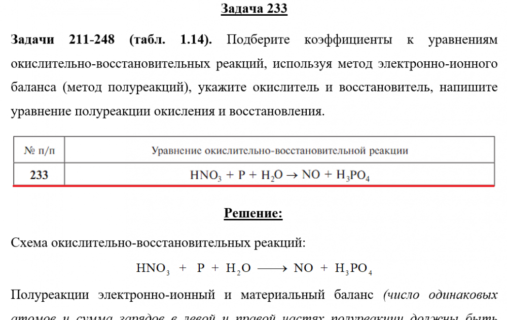 Для студентов по предмету ХимияЗадача 233 - Подберите коэффициенты к уравнениям окислительно-восстановительных реакций, используя метод электронно-ионного баланса (метод полуреакцийЗадача 233 - Подберите коэффициенты к уравнениям окислительно-восстановительных реакций, используя метод электронно-ионного баланса (метод полуреакций