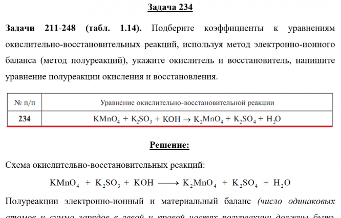 Для студентов по предмету ХимияЗадача 234 - Подберите коэффициенты к уравнениям окислительно-восстановительных реакций, используя метод электронно-ионного баланса (метод полуреакцийЗадача 234 - Подберите коэффициенты к уравнениям окислительно-восстановительных реакций, используя метод электронно-ионного баланса (метод полуреакций