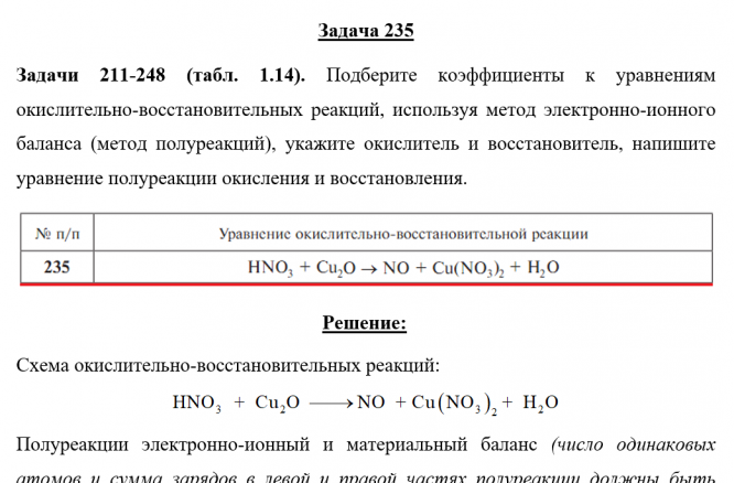 Для студентов по предмету ХимияЗадача 235 - Подберите коэффициенты к уравнениям окислительно-восстановительных реакций, используя метод электронно-ионного баланса (метод полуреакцийЗадача 235 - Подберите коэффициенты к уравнениям окислительно-восстановительных реакций, используя метод электронно-ионного баланса (метод полуреакций