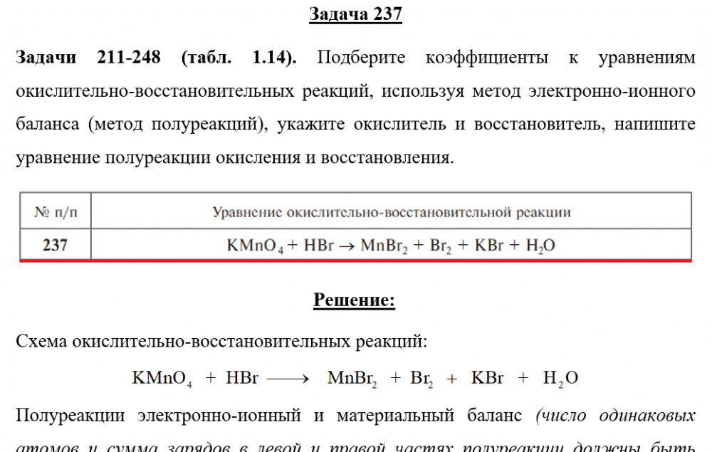 Для студентов по предмету ХимияЗадача 237 - Подберите коэффициенты к уравнениям окислительно-восстановительных реакций, используя метод электронно-ионного баланса (метод полуреакцийЗадача 237 - Подберите коэффициенты к уравнениям окислительно-восстановительных реакций, используя метод электронно-ионного баланса (метод полуреакций