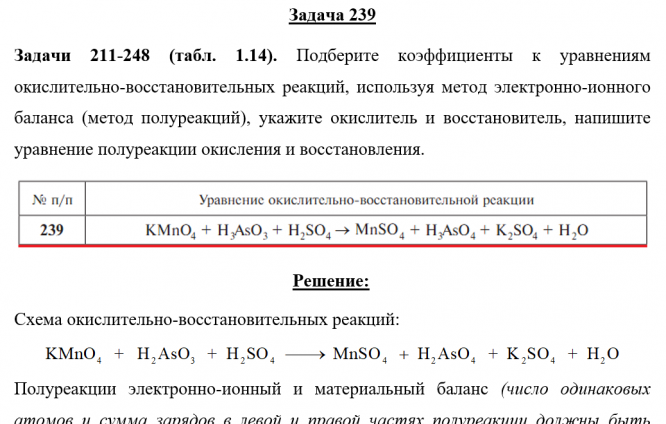 Для студентов по предмету ХимияЗадача 239 - Подберите коэффициенты к уравнениям окислительно-восстановительных реакций, используя метод электронно-ионного баланса (метод полуреакцийЗадача 239 - Подберите коэффициенты к уравнениям окислительно-восстановительных реакций, используя метод электронно-ионного баланса (метод полуреакций