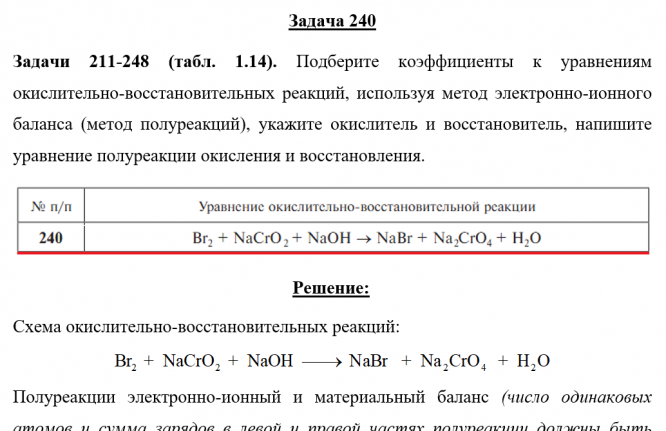 Для студентов по предмету ХимияЗадача 240 - Подберите коэффициенты к уравнениям окислительно-восстановительных реакций, используя метод электронно-ионного баланса (метод полуреакцийЗадача 240 - Подберите коэффициенты к уравнениям окислительно-восстановительных реакций, используя метод электронно-ионного баланса (метод полуреакций
